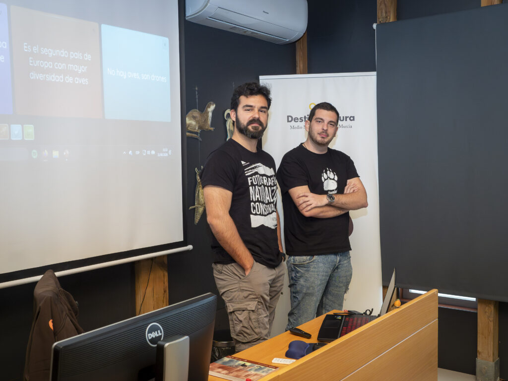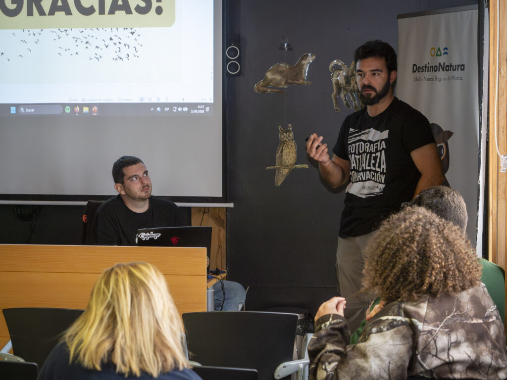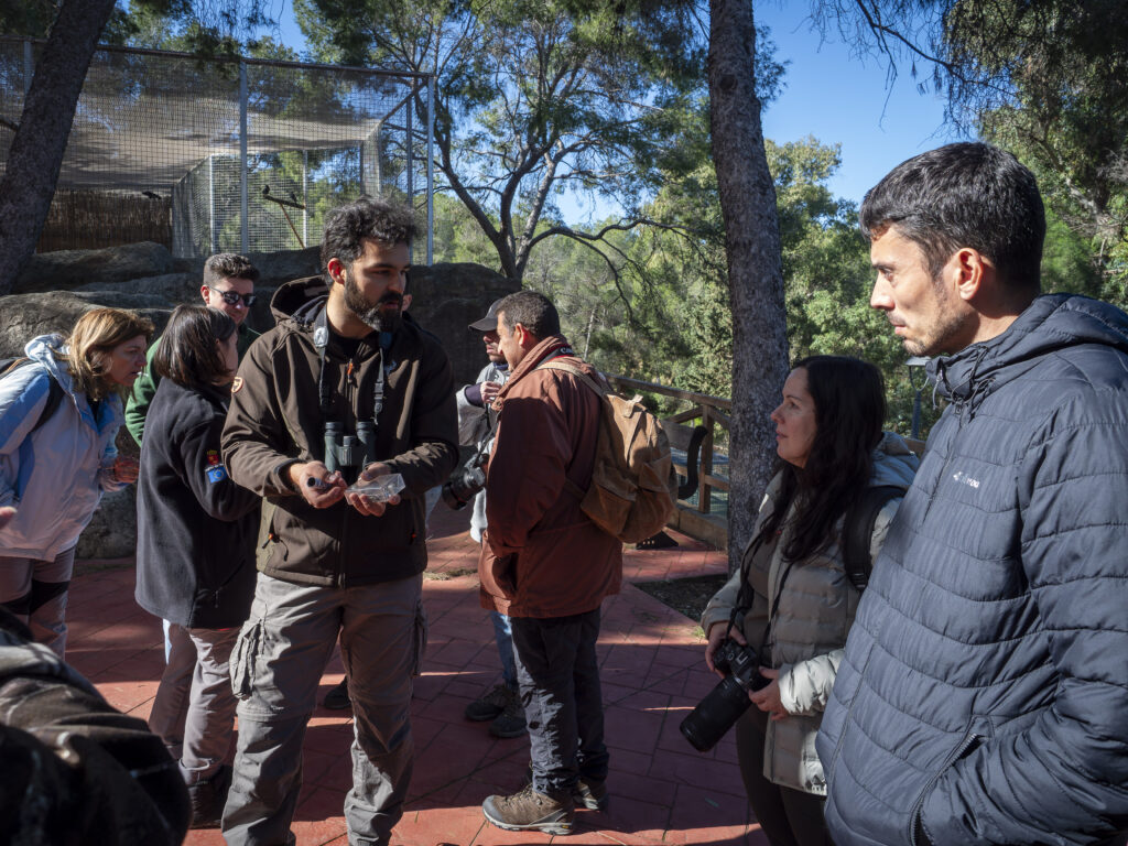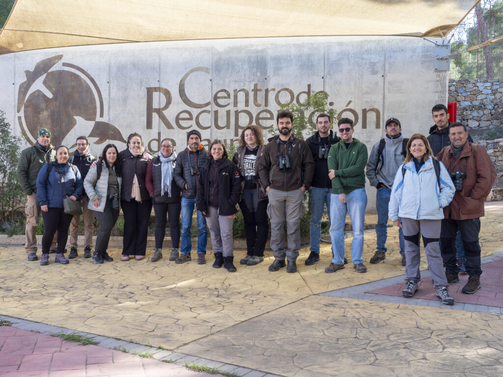 La jornada comenzó con la acogida de l@s participantes en el aula de naturaleza del Centro de Recuperación de Fauna Silvestre El Valle, donde tuvimos la oportunidad de disfrutar de la charla con los contenidos básicos. Mientras Pablo y Mario nos enseñaban la mejor manera de aficionarse a la observación, destacó la calidez de un grupo participativo y entusiasta, generando un ambiente que se caracterizaba por una interacción constante entre asistentes y ponentes.