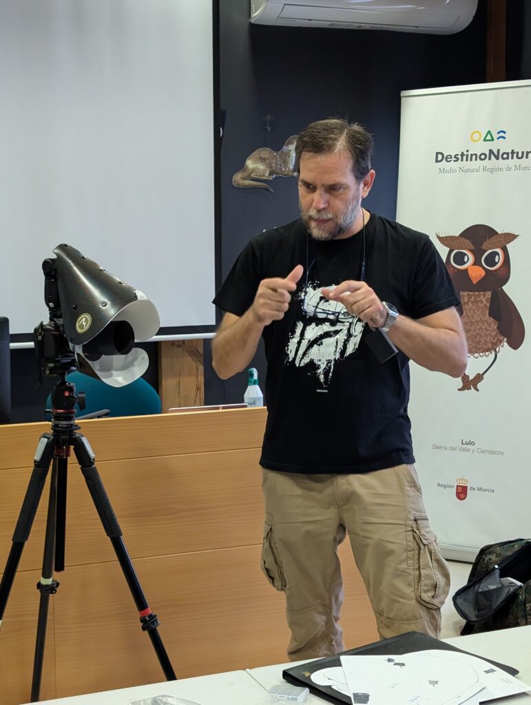 El evento, celebrado en el Centro de Recuperación de Fauna de El Valle, estuvo lleno de emotivos reencuentros que crearon un ambiente cálido y muy animado. El montaje de la zona de trabajo fue rápido y efectivo, permitiendo que Fran explicara las pautas y facilitara los materiales necesarios para ponernos manos a la obra. Así, nos lanzamos a la creación de nuestro difusor casero.